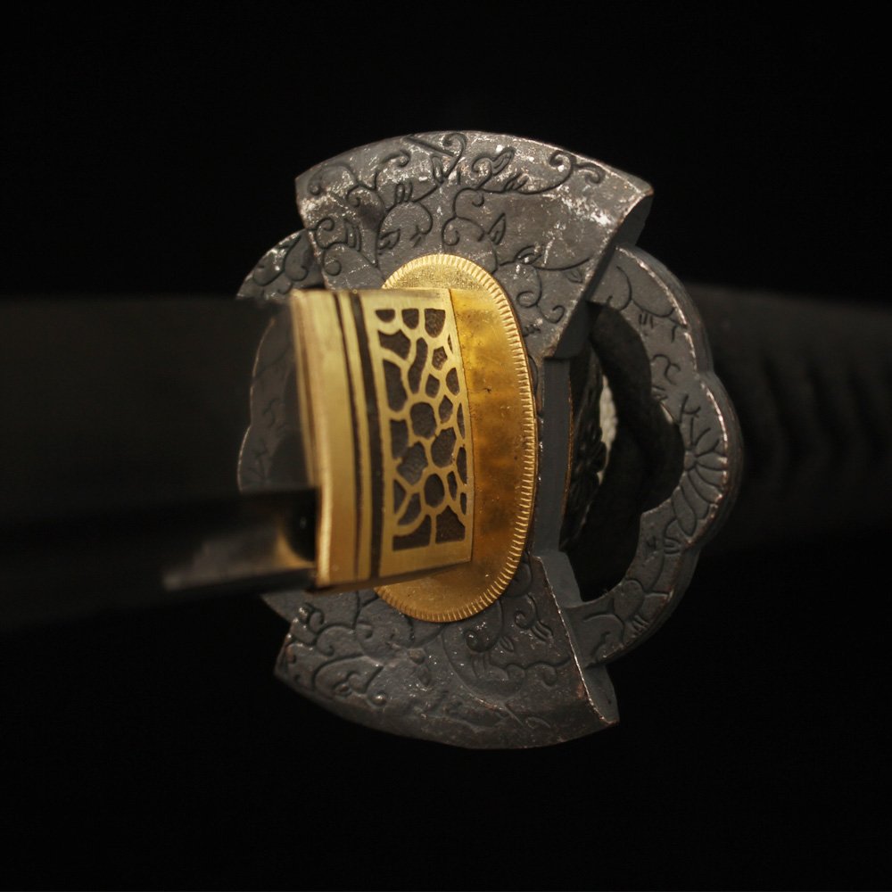TSUBA: The Tsuba (guard) of the sword is made of zinc alloy. The Habaki (blade collar) is a one piece brass construction. Two Seppas (spacer) secure the Tsuba.