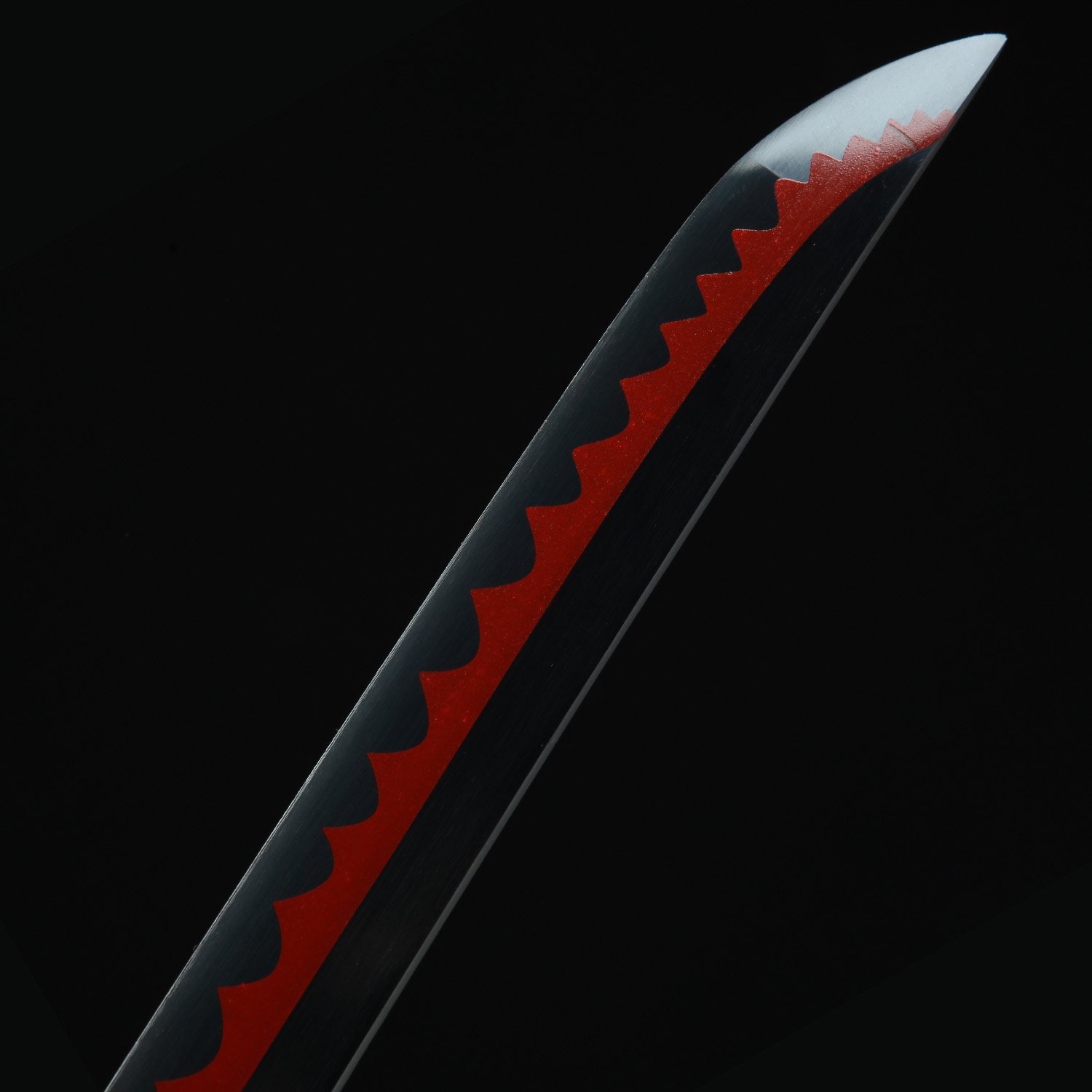Forged from 1045 carbon steel with black and red color, the blade of this katana is both strong and flexible. The sharp-edged blade has been hand-polished and honed to perfection, making it ideal for cutting practice and demonstrations.