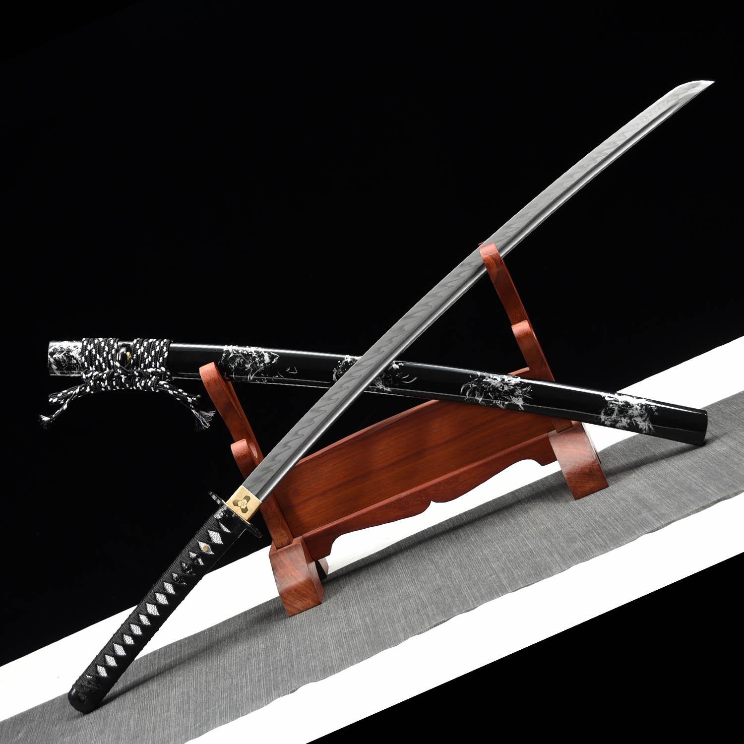 BLADE: The blade of the sword has been hand forged using the ancient method of sword making. Full hand forged, hand polished. The blade was made of T10 carbon steel clay tempered with real hamon, and it has been laminated in a Maru style. The whole blade was hardened by oil quenched.