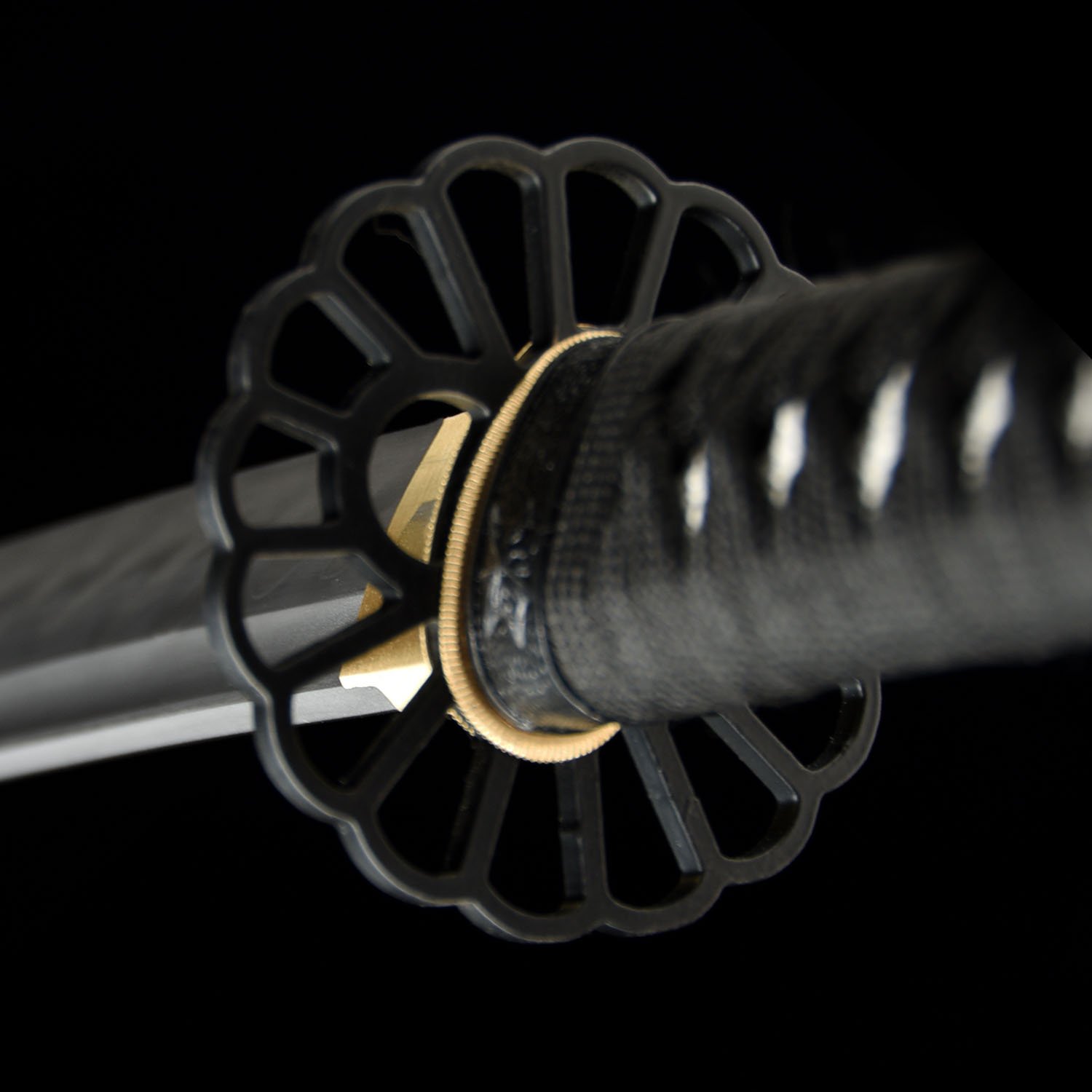 TSUBA: The Tsuba (guard) of the sword is made of Iron. The Habaki (blade collar) is a one piece brass construction. Two Seppas (spacer) secure the Tsuba.