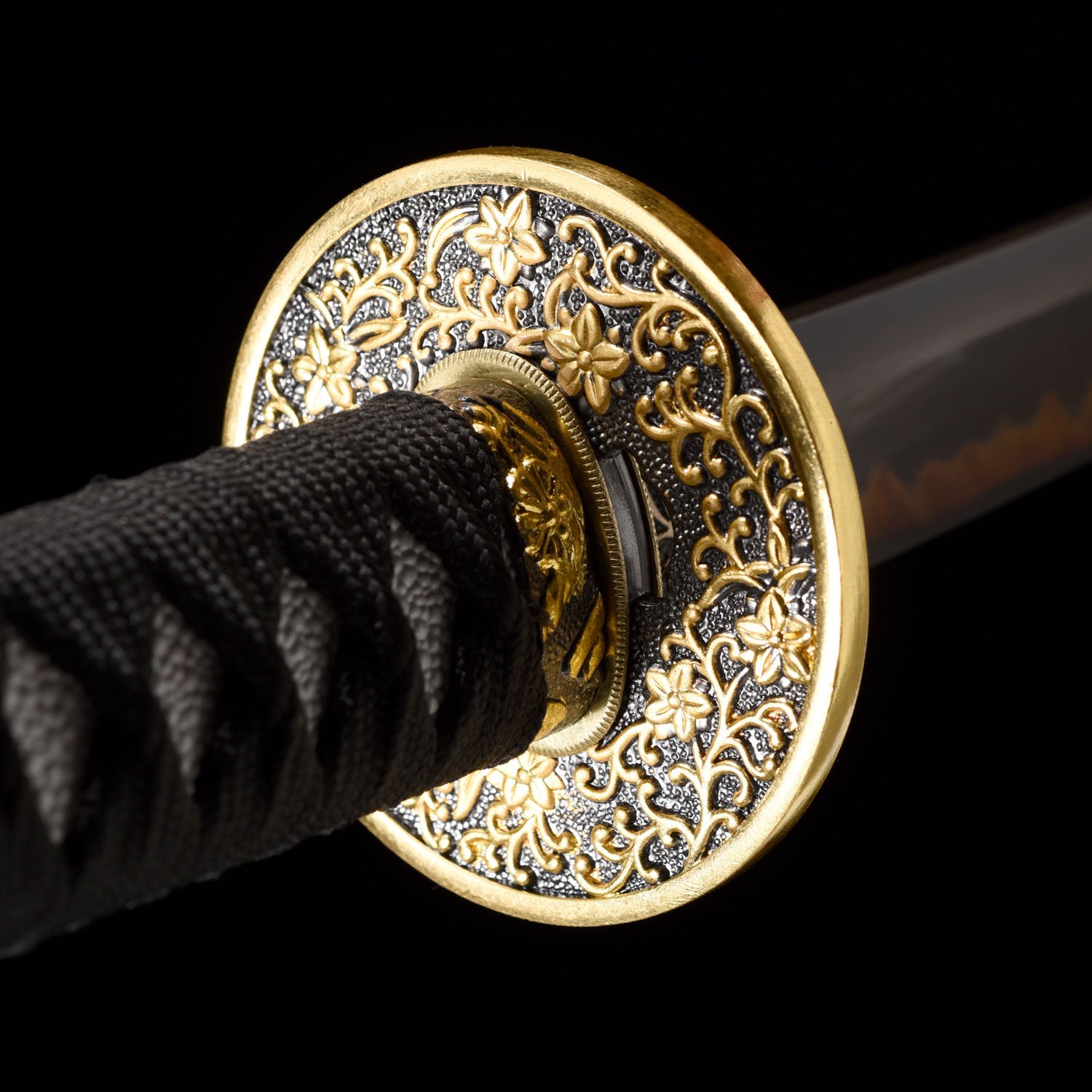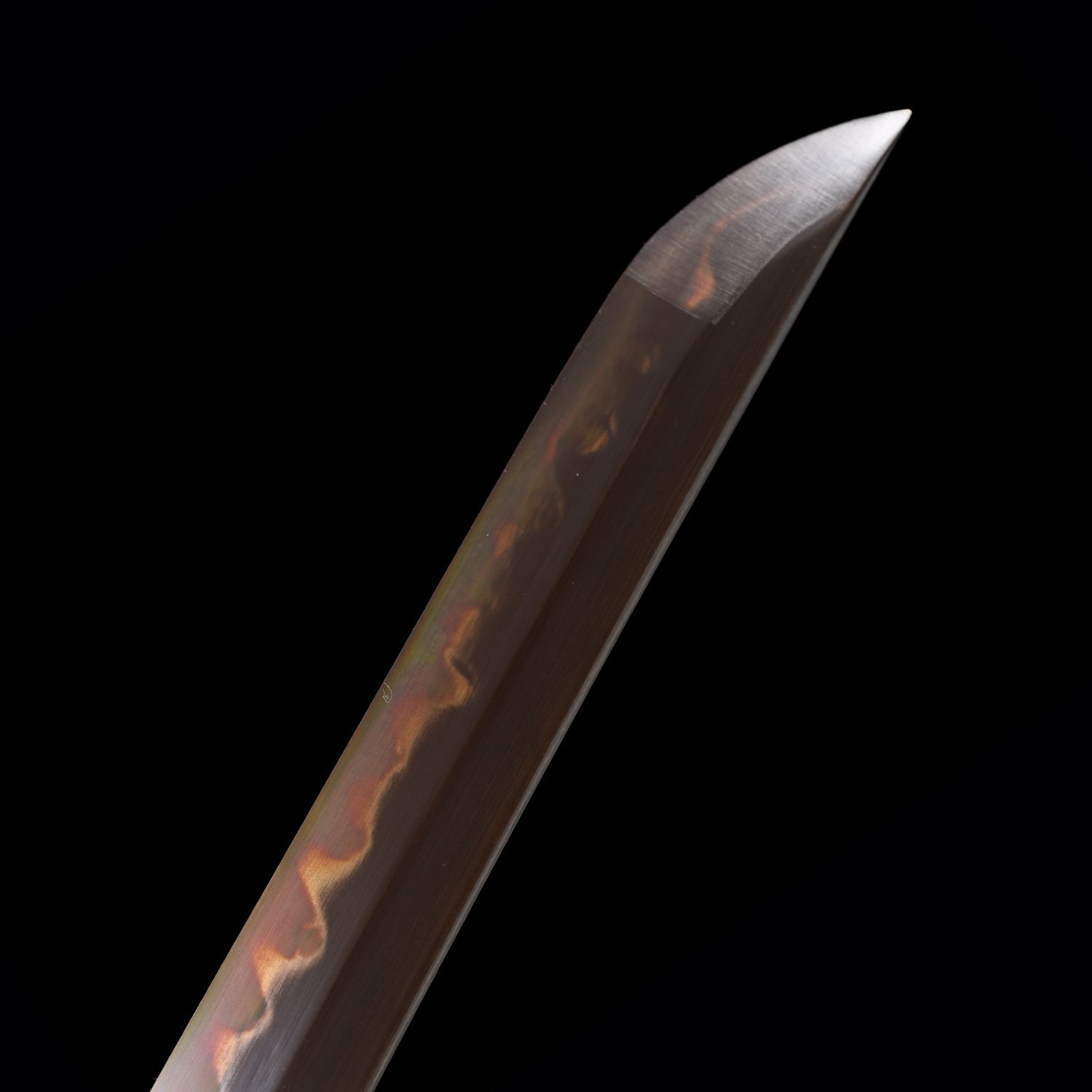 The blade is not only allows for a lighter blade and audible feedback when swung, but also can balance the blade to achieve optimal performance. The tip of the blade is a Chu Kissaki (medium length).This blade has been hand polished with multiple grade sharpen stone by Japanese method, which made the surface of the blade like a mirror, the blade is also very sharp. This blade comes with a full length Tang which greatly enhances the strength of the sword. this sword is strong enough to cut through a thick bamboo tree with a single strike yet sharp enough to slice paper.