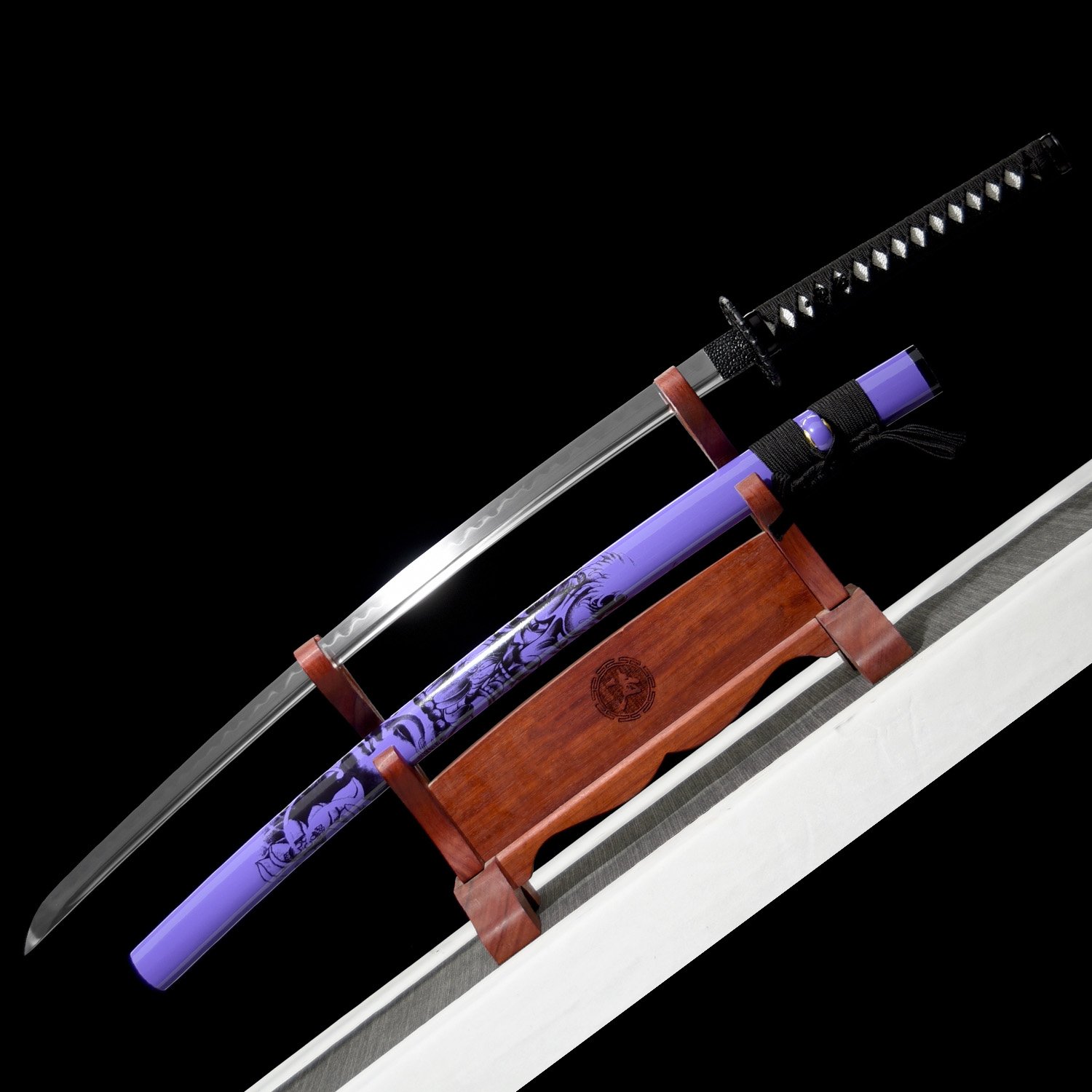 BLADE: The blade of the sword has been hand forged using the ancient method of sword making. Full hand forged, hand polished. The blade was made of T10 carbon steel clay tempered with real hamon, and it has been laminated in a Maru style. The whole blade was hardened by oil quenched.